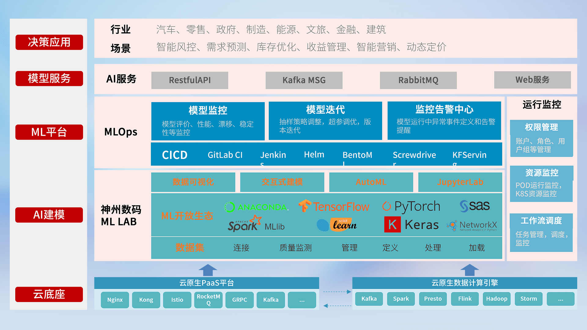 数据+模型双引擎驱动,,面向智能服务场景,,,,快速灵活利用AI技术,,,,支持业务决策,,,,助力企业智能化转型破局。。